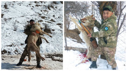 Алайдагы мергенчилер 2 чоң карышкыр атты. Сүрөт